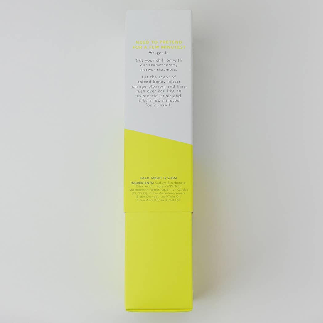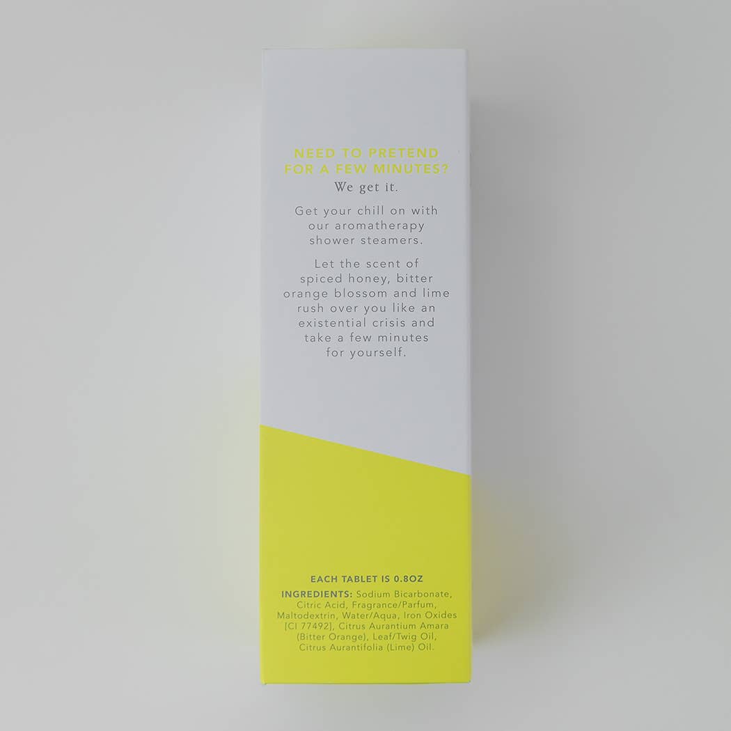 Everything Is Fine is your cheeky shower-side reminder to breathe, reset, and fake it ‘til you make it. Each steamer blends spiced honey, bitter orange blossom, and lime for a scent that’s equal parts refreshing and grounding — like sunshine after a meltdown.
