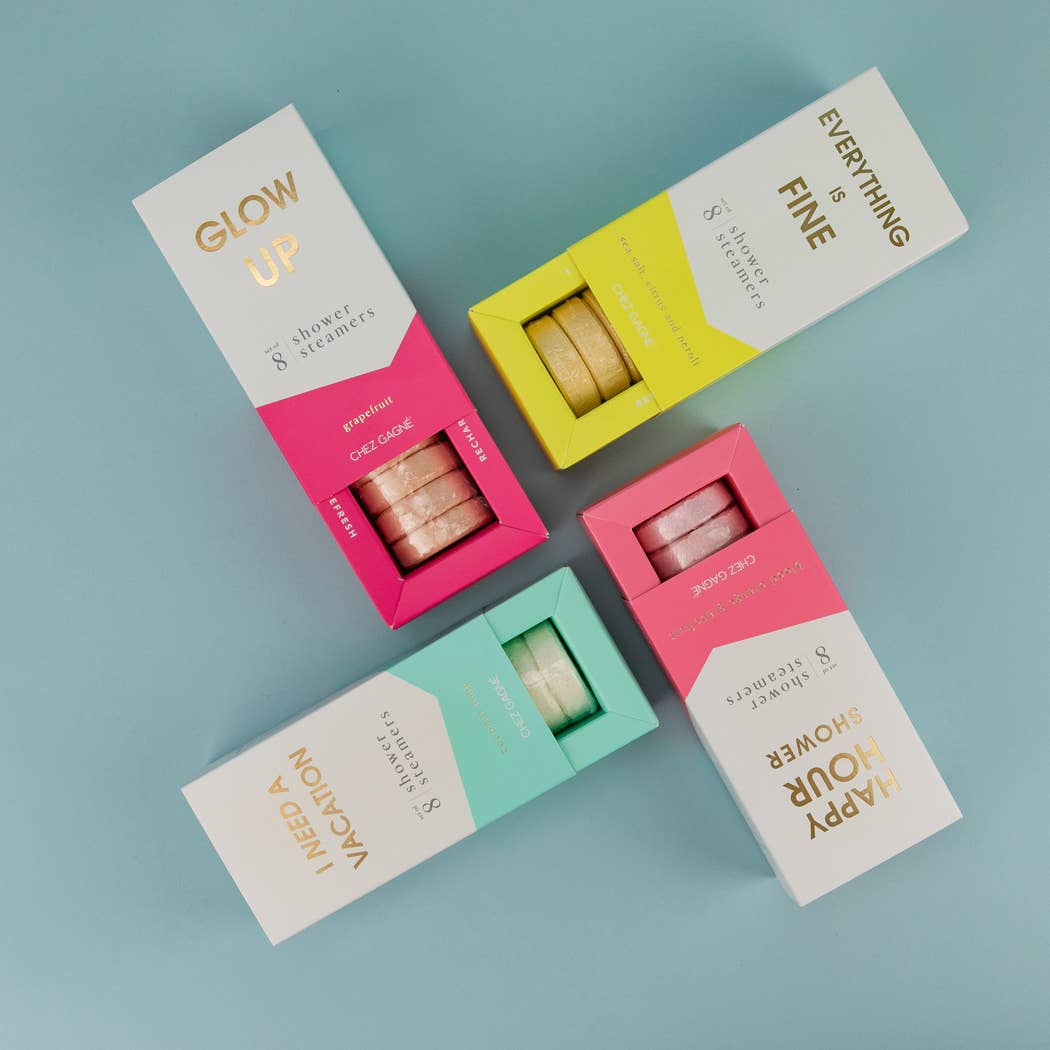 Drop one on your shower floor, let the steam rise, and watch your mood (and sanity) come back online. Vegan, cruelty-free, and made with clean ingredients in the USA, they come packaged in a bold, gift-ready box that makes even chaos look cute.