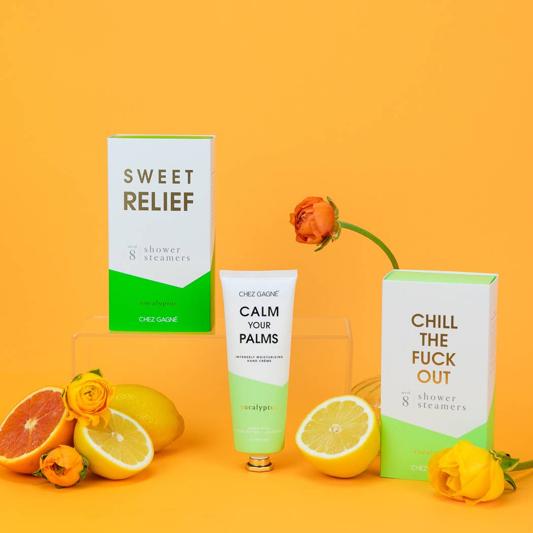 Sweet Relief is your in-shower rescue kit — crisp, herbal, and deeply refreshing. Infused with pure eucalyptus essential oil, each steamer opens your senses, clears your head, and gives your body the reset it deserves.