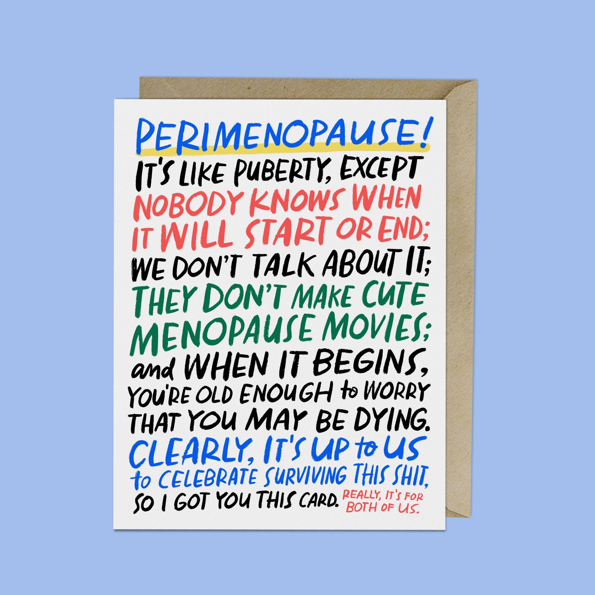 When we started navigating perimenopause, we wished there had been a card like this—something real, supportive, and a little bit funny. Since it didn’t exist, we made one. This card is for you, your friends, your sisters, your neighbors—for all of us—because laughter and connection make the transition less isolating and more empowering.