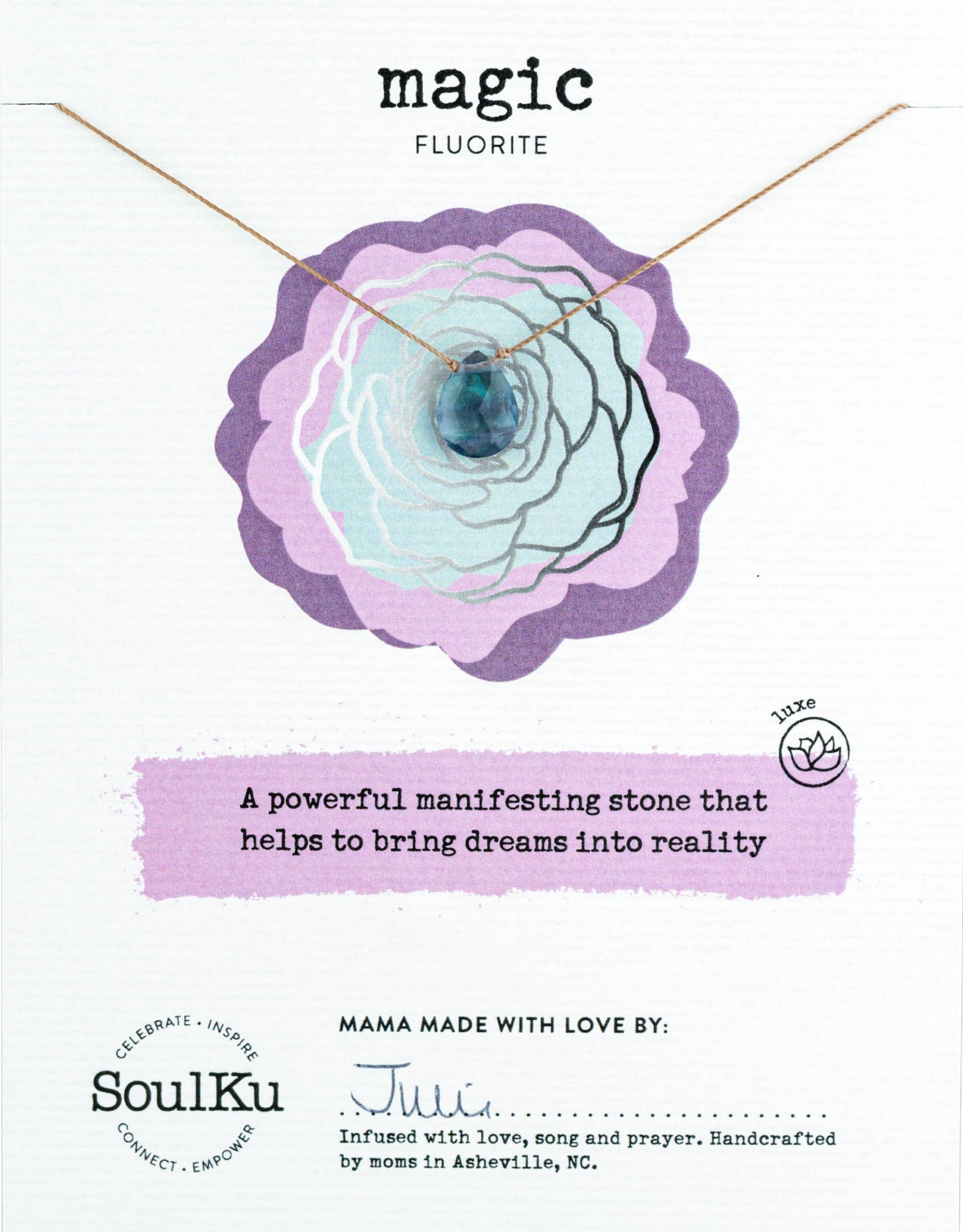 The Magic necklace by SoulKu, featuring the powerful energy of Fluorite, is a touchstone for bringing dreams into reality, sharpening intuition, and clearing the path for what’s next.