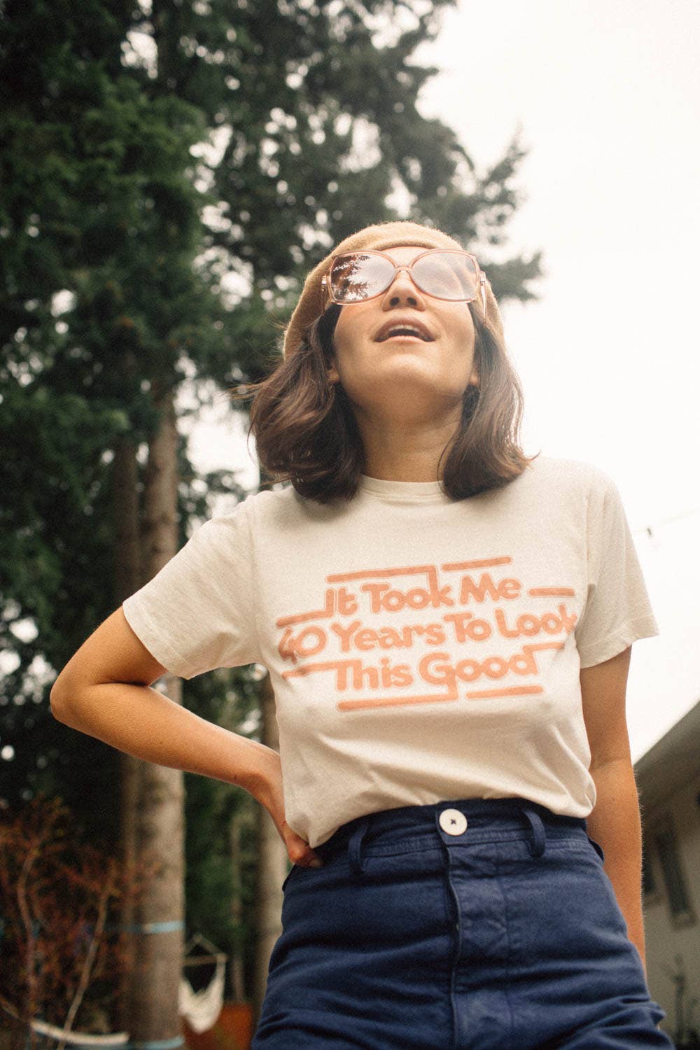 This unapologetically fabulous tee is for every woman who’s done the work, lived the stories, and still walks in like the main character. Screen printed on a super-soft, enzyme-washed cotton tee in warm grey, it’s the perfect throw-on-and-feel-invincible shirt for brunch, errands, or your next slow-motion strut into the room.