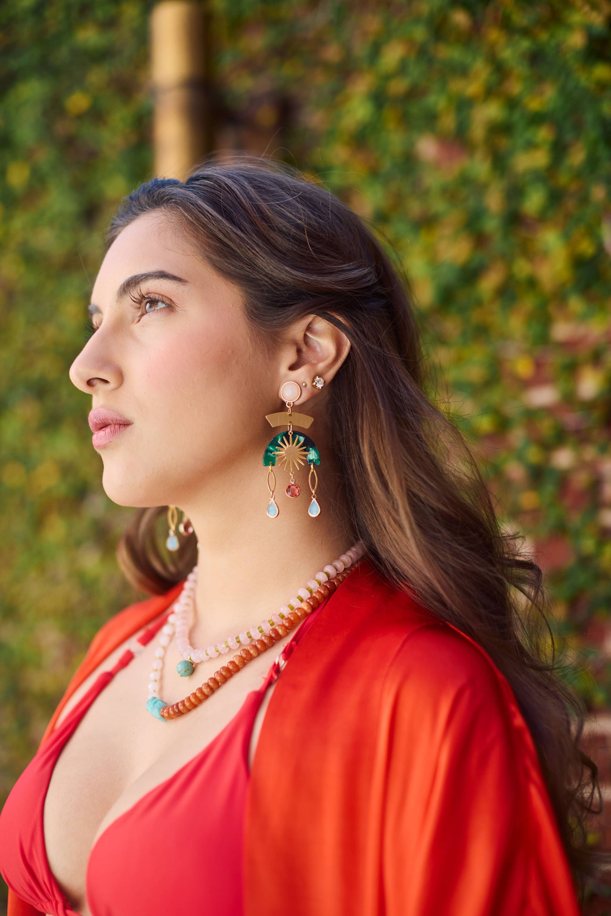 A colorful and joyful finishing touch to any outfit, these abstract chandeliers are next-level statement makers. Equal parts vacation-ready and wedding-worthy, they bring unapologetic color and movement wherever you go.
